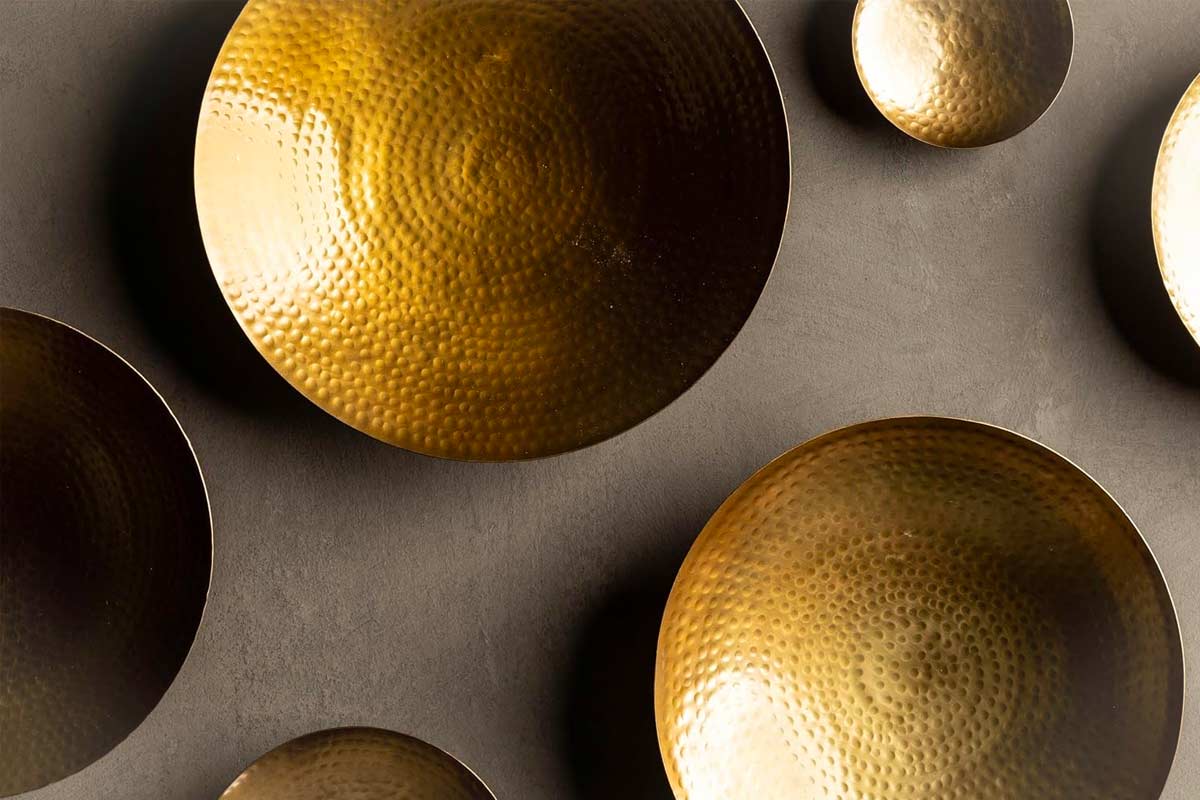 Entrare in un ambiente dove le decorazioni in metallo vestono la parete è come immergersi in una narrazione fatta di dettagli. C’è una leggerezza nuova nell’aria, quella di un design che sa dialogare con la luce e con lo sguardo. I riflessi metallici, a volte opachi, a volte lucidi come acqua ferma, accompagnano il ritmo della giornata: all’alba le superfici si accendono, mentre la sera si velano di ombre soffuse. La casa moderna non ha più bisogno di pareti fredde, spoglie, impersonali. Basta poco: un set di foglie stilizzate, qualche disco dorato, geometrie nere a contrasto. E il soggiorno cambia pelle. Il corridoio smette di essere un passaggio e diventa scena.