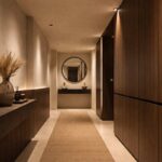 Colore sabbia e legno acuro: il contrasto materico che trasforma un corridoio anonimo in uno spazio di design