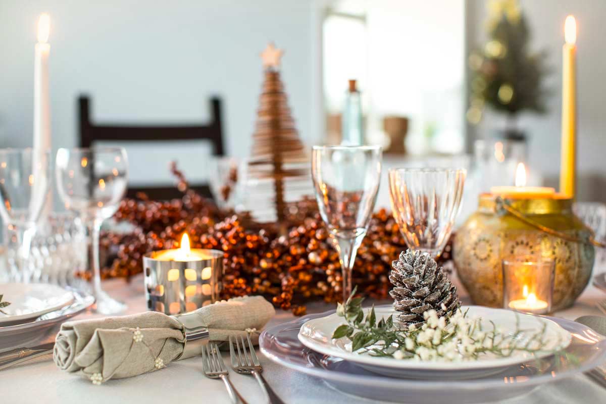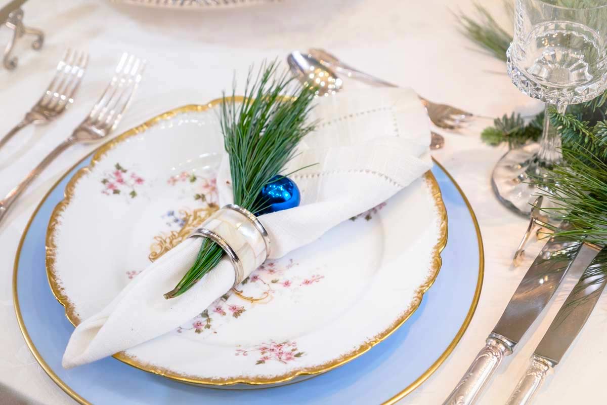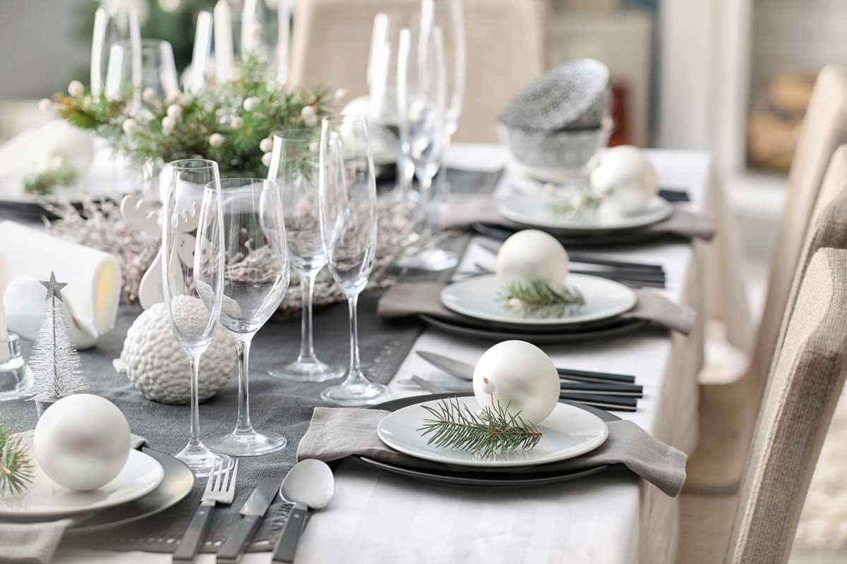 Il lino grezzo accarezza la superficie, il cotone stropicciato si lascia attraversare dalla luce tremolante. I colori sono delicati, tra beige, avorio e cenere, con qualche tocco di oro antico o verde salvia. Niente eccessi, solo equilibrio e calore. Il profumo di una candela alla vaniglia si mescola a quello dei rami di pino, mentre i dettagli fatti a mano, una pigna leggermente imbiancata, un fiocco di spago, un rametto di rosmarino fresco, raccontano storie semplici, ma ricche di cura.
